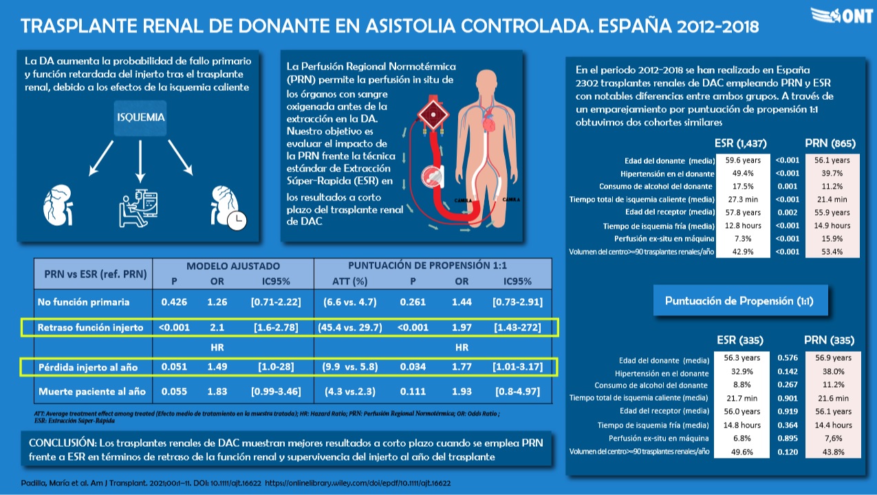 Leer másLa Perfusión Regional Normotérmica en la donación en asistolia controlada reduce la necesidad de diálisis en la primera semana post-trasplante renal y mejora la supervivencia del injerto al año.